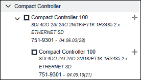 | Devices from Catalog | Displays devices from the catalog. These devices can be used for offline project planning. New devices are automatically added to the catalog when the WAGO Device Manager is updated. |