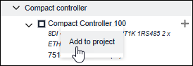 - via drag and drop from the product selection on the right into the “Devices in project” area on the left or