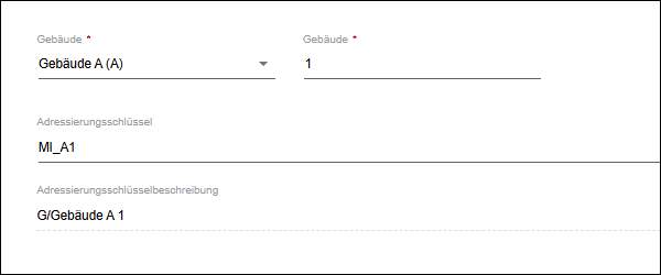 Position innerhalb der Beschreibung | Position der ausgewählten Entität unter „Adressierungsschlüsselbeschreibung“ (siehe 8 Register „ADRESSIERUNG“). Beispiel: In der Baumstruktur ist eine Entität vom Typ „Gebäude“ ausgewählt. Ihr wird an dieser Stelle der Wert „1“ zugewiesen. Unter „Adressierungsschlüsselbeschreibung“ steht diese Entität damit an Position 1.