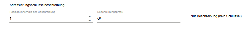 Nur Beschreibung (kein Schlüssel) | Zeigt ausschließlich diesen Parameter an und blendet den Adressierungsschlüssel aus. | |