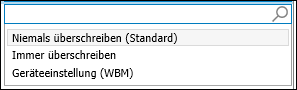 Immer | Überschreibt eine ggf. bereits existierende Datei gleichen Namens. Die gewählte Datei wird immer übertragen. | |