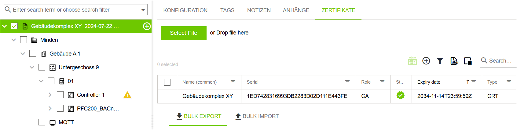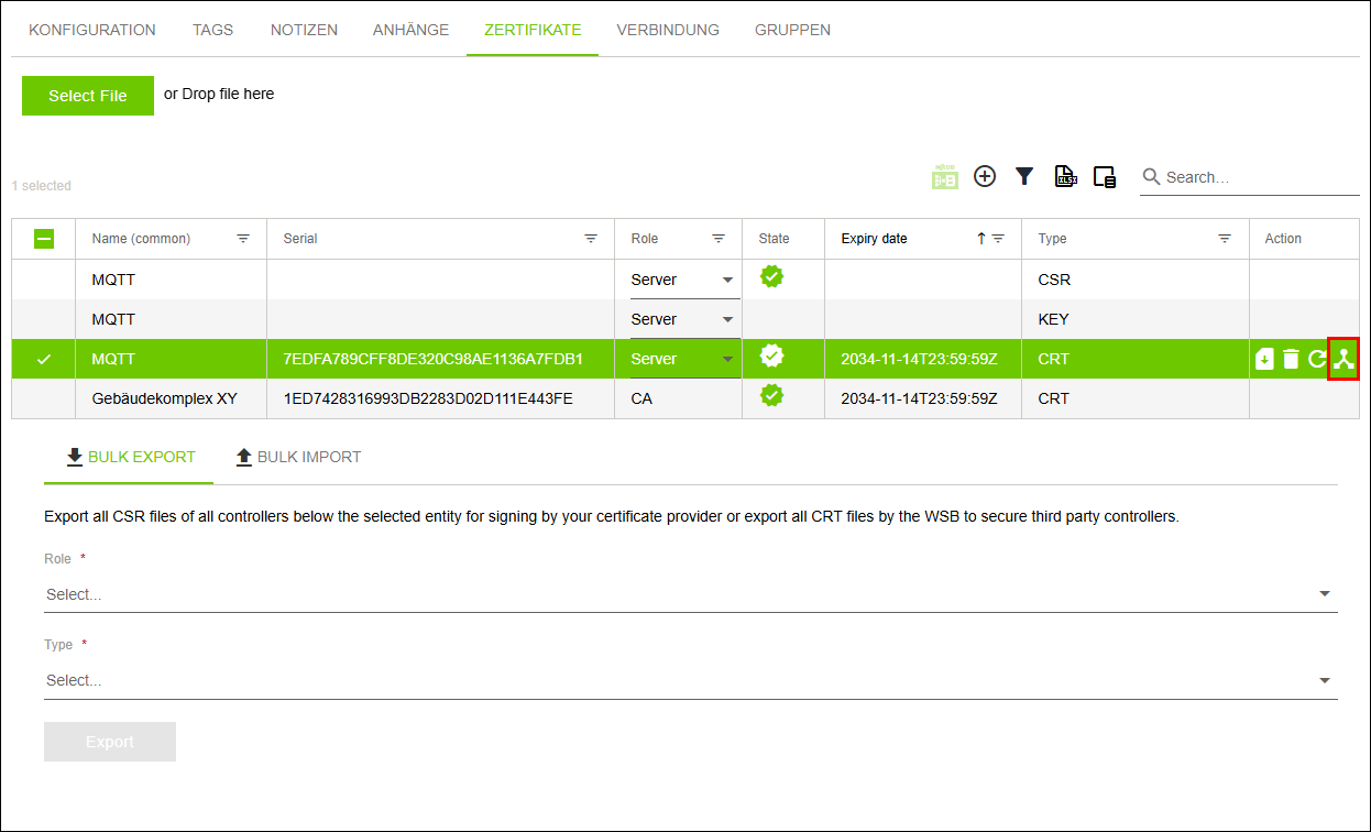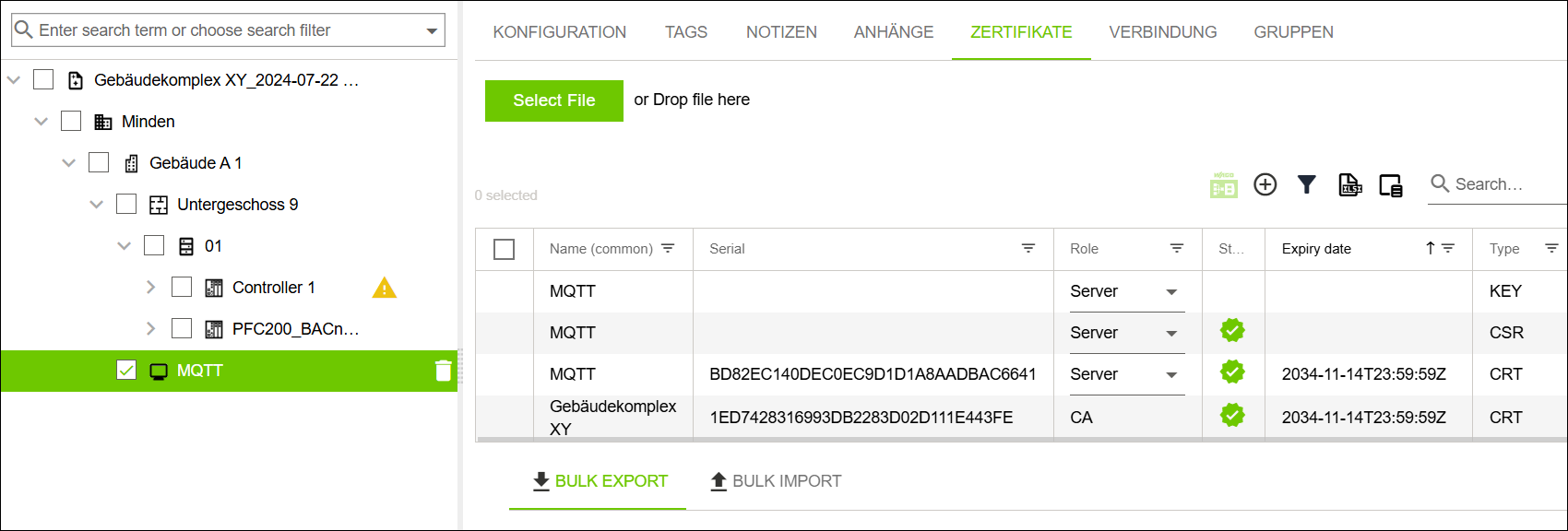 . - The server certificate is distributed to all entities of type “Controller” that are included in the “MQTT” communication group.