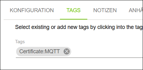 - The Certificate:MQTT tag is defined in WAGO Solution Builder and assigned to the “MQTT” communication group.